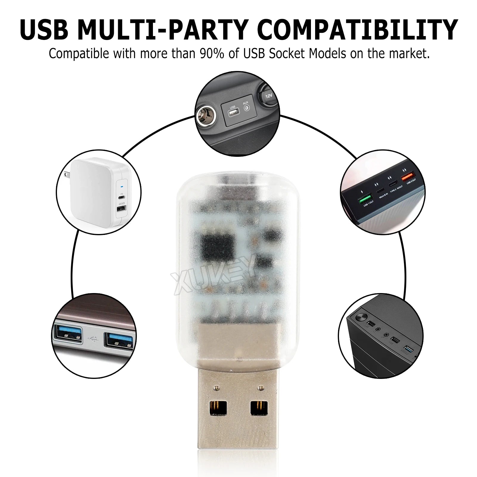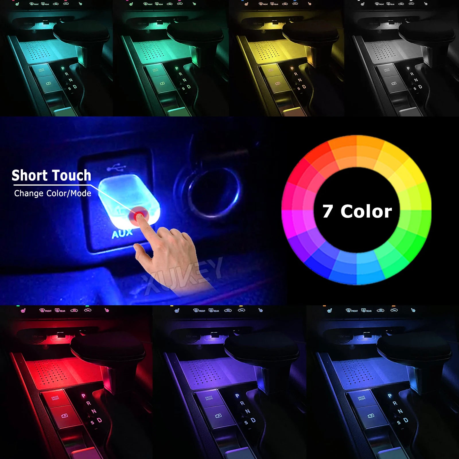 2pcs Mini USB Car Ambient Lighting 7 Colors LED Auto Interior Atmosphere Plug-in Light Laptops Sockets Night Lamp RGB Music Sync